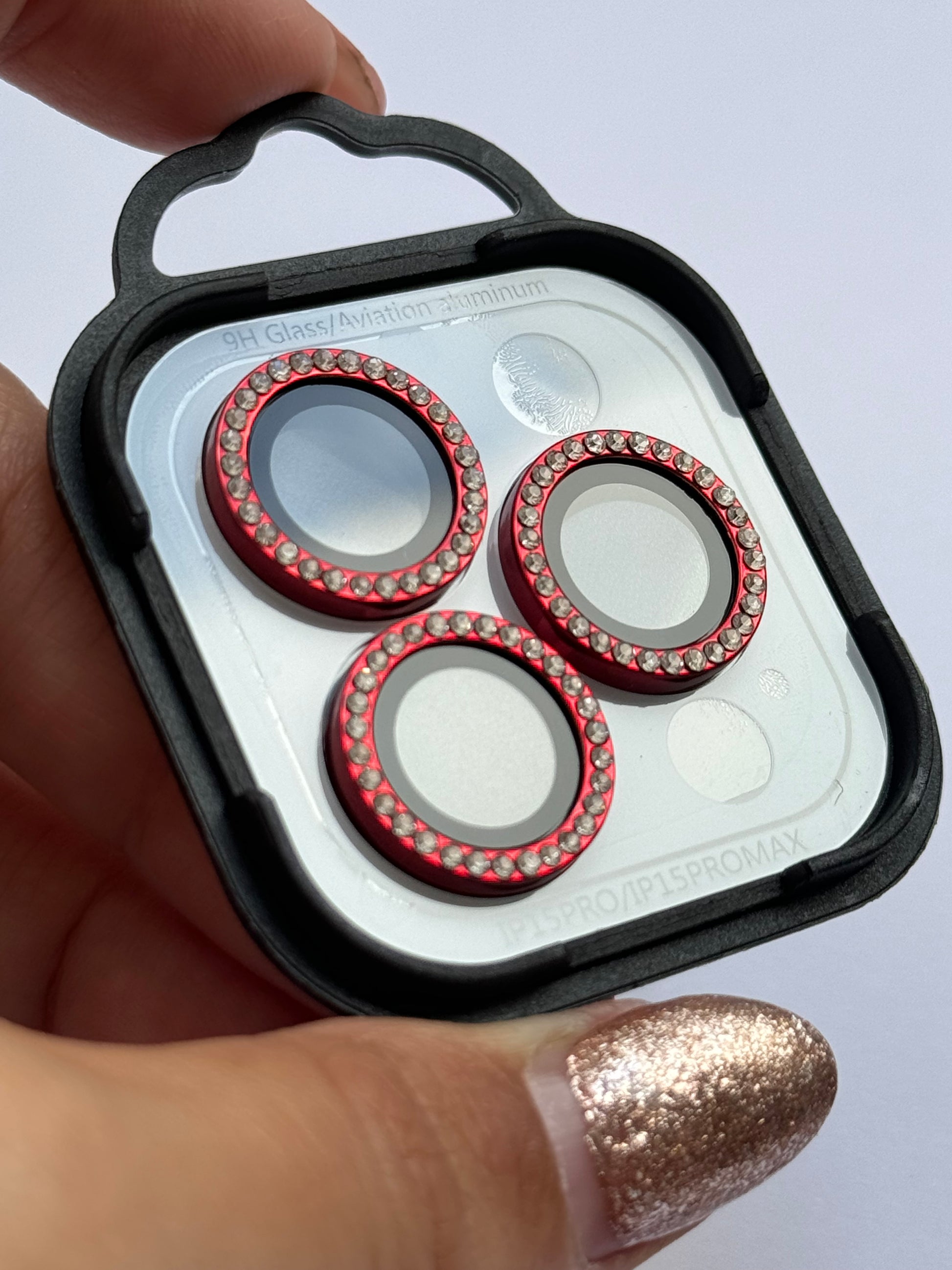 Protector de cámara individual: Rojo con brillos ✨